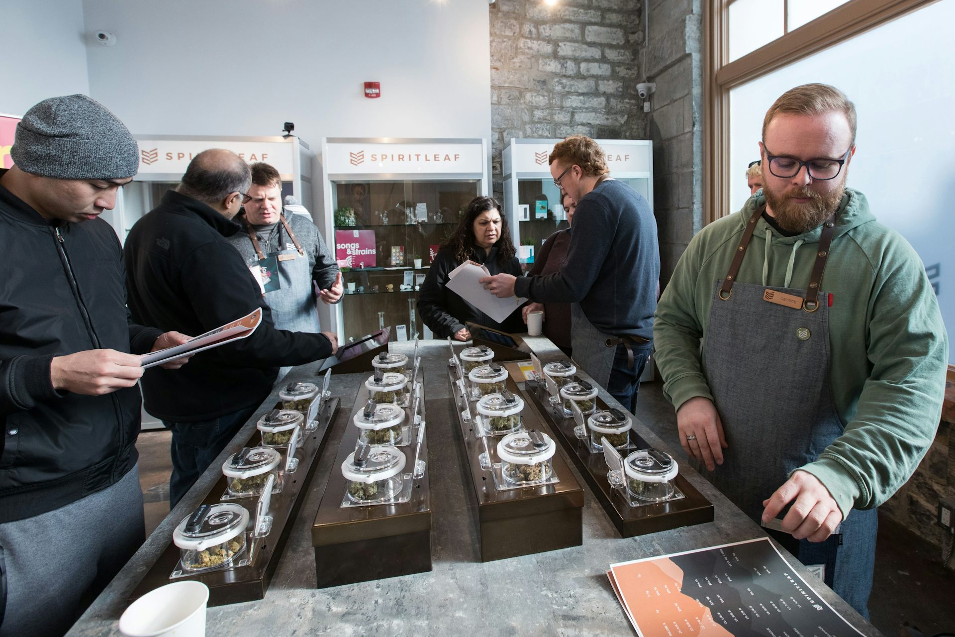 As cannabis business takes off in Canada, many are frustrated by the new amnesty law which leaves thousands with the stigma of criminal records. Here people look at products inside Spiritleaf, the first cannabis store in Kingston, Ont., on April 1, 2019.